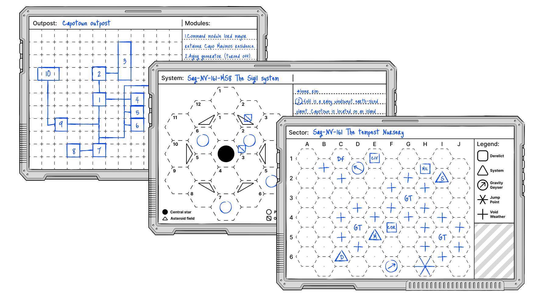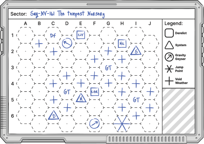Create void sectors of dangerous space full of derelicts to pillage, outposts to patronise, and artefacts to plunder with this hex creation toolkit!